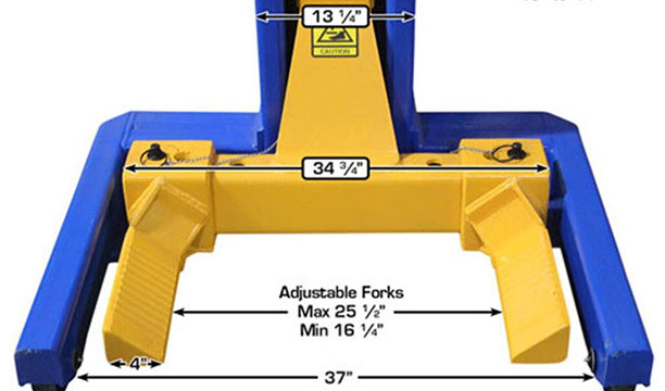 Multi-width wheel forks with locking pins accommodate the widest range of wheels eliminating the need for specialty wheel adapters
